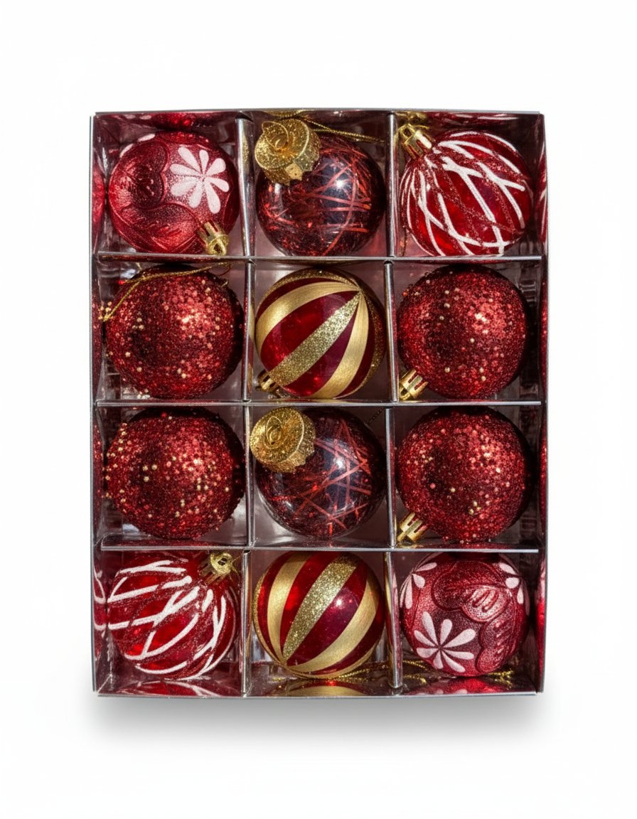 Cansüs12’li Kırmızı Yılbaşı Ağacı Süsü Cici Top Seti – Noel Dekoratif Süsleme123456942