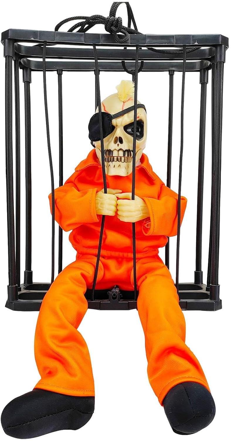 28 cm Hareket Sensörlü Sesli ve Hareketli Kafesteki Mahkûm İskelet Dekoru | Cadılar Bayramı (123457017)